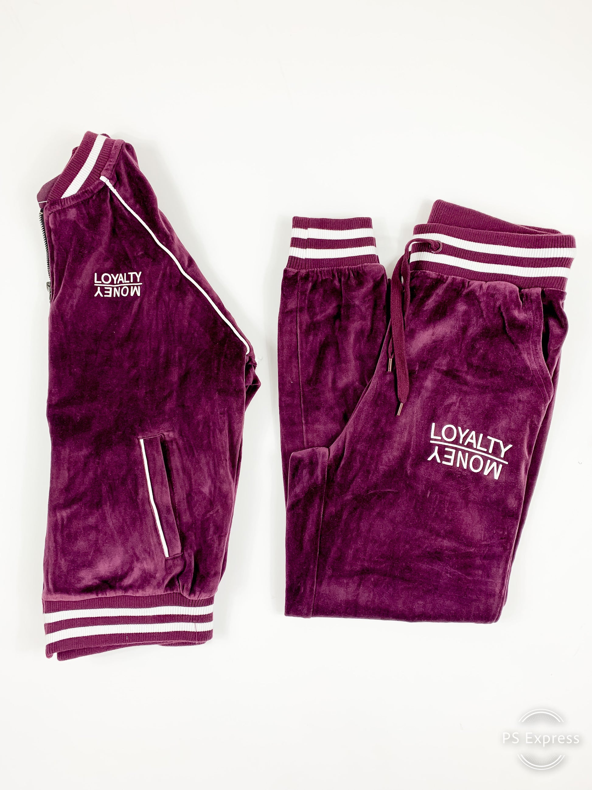 Ladies maroon loyalty over money valor sweatsuits.runs a slight big