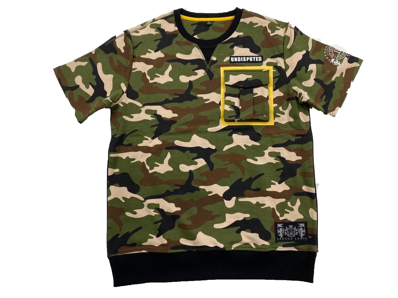 Short sleeve camouflage shirt with cargo pocket on the chest.collection logo on the arm and on the bottom of the shirt.this is part of the LOM & LENNOX LEWIS CHAMPIONSHIP COLLECTION