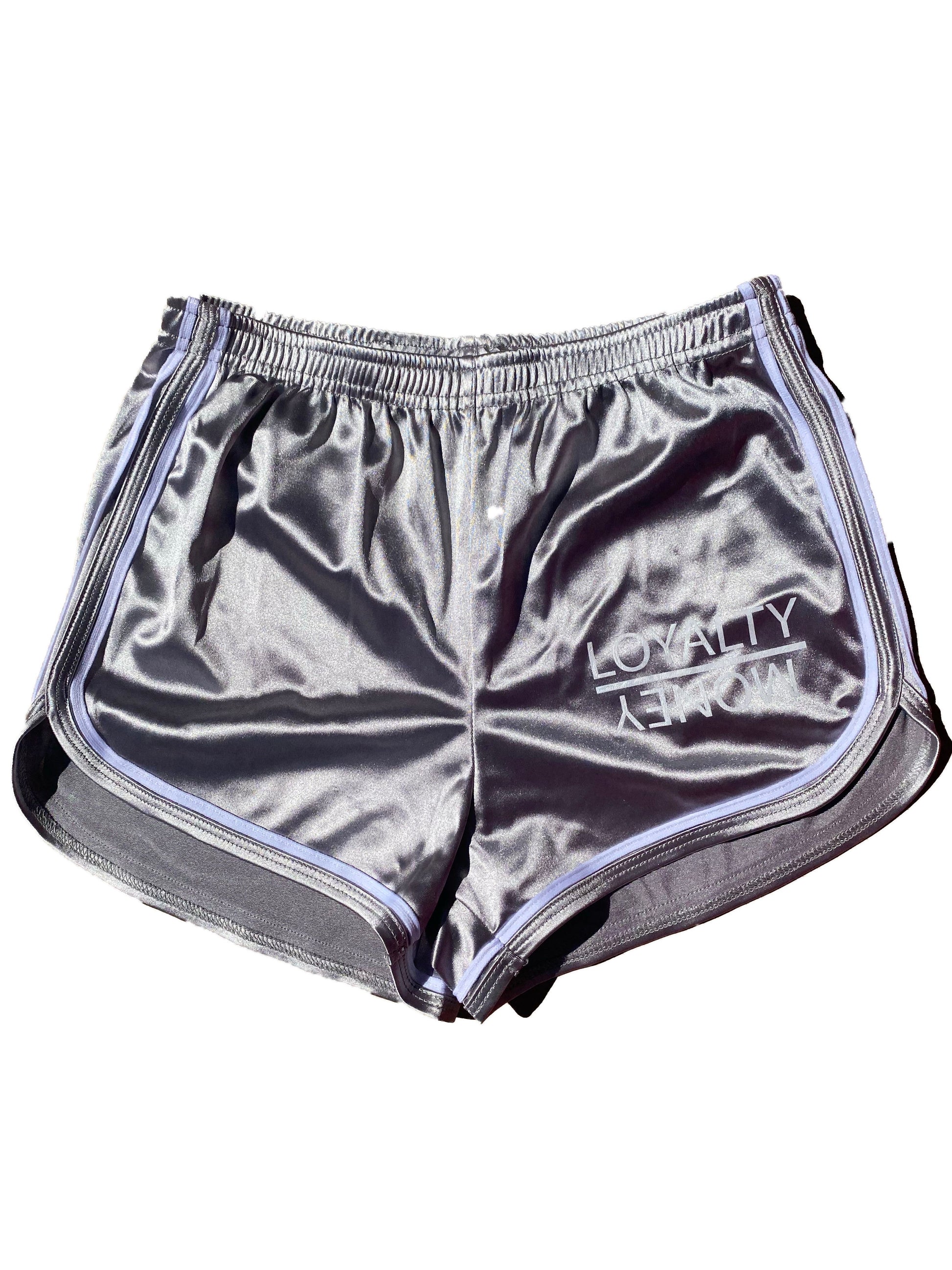 Grey/white loyalty over money silk house shorts