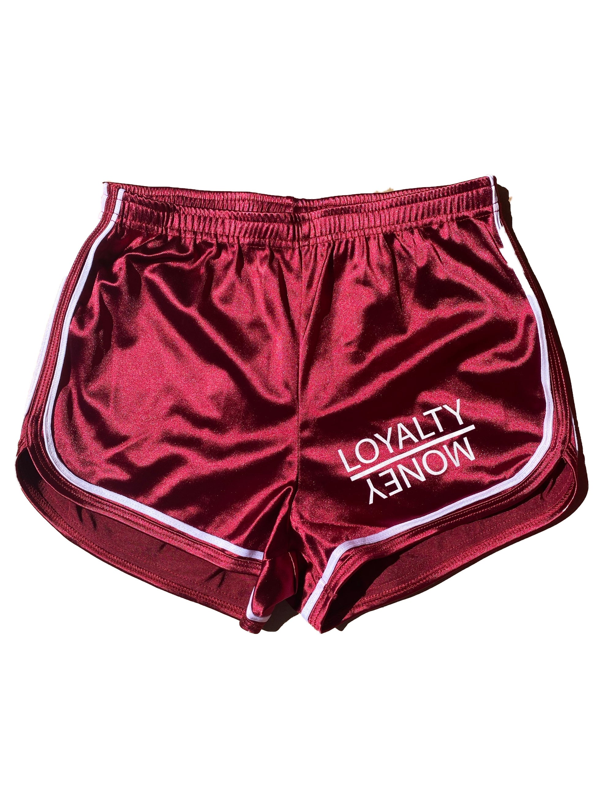 Red/white loyalty over money silk house shorts